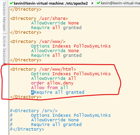 <Directory /var/www/html> Options Indexes FollowSymLinks AllowOverride all order allow,deny Allow from all #Require all granted </Directory>