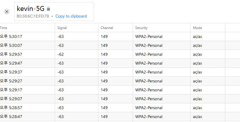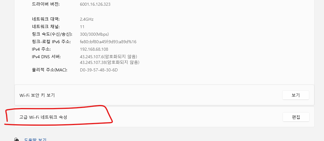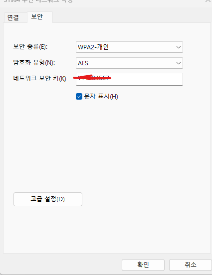 보안 설정 ----------------- 인증 : WPA2-개인 암호 : CCMP 인증 : WPA2-개인 암호 : GCMP 보안 키 : 있음 키 콘텐츠 : YYXXXXX --------------------> 패스워드를 확인 가능 합니다.