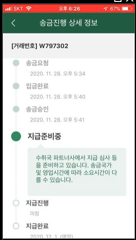 다음부터는 똑같은 수취인에서 송금시 1-2시간안에 송금되는거 같습니다.