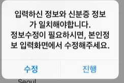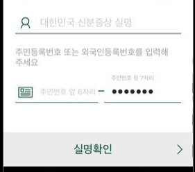 휴대폰 인증을 완료 하면 이름과 주민등록번호를 입력하고 실명확인 버튼을 클릭합니다.