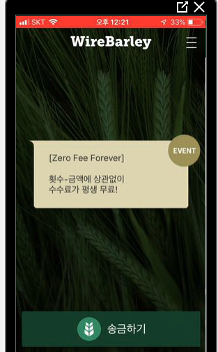 아래와 같이 WireBarley 9월달부터 이벤트를 시작해서 끝날때까지 회수 금액 상관없이 수수료 평생 무료로 사용할수 있습니다.