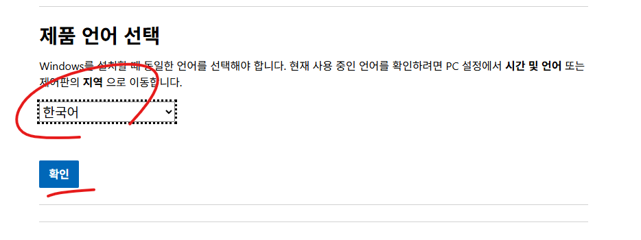 6. 아래 Korean를 언어를 선택하고 Confirm버튼을 클릭 합니다.