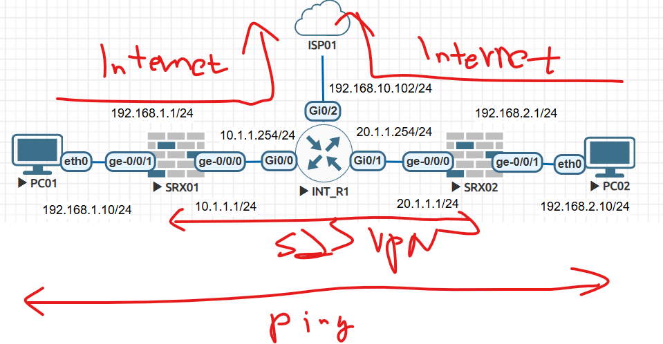vSRX는 보안 장비이기 때문에 기본적으로 icmp 패킷을 차단합니다.