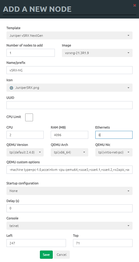 Ethernets에 숫자를 8로 입력하고 SRX를 부팅합니다.