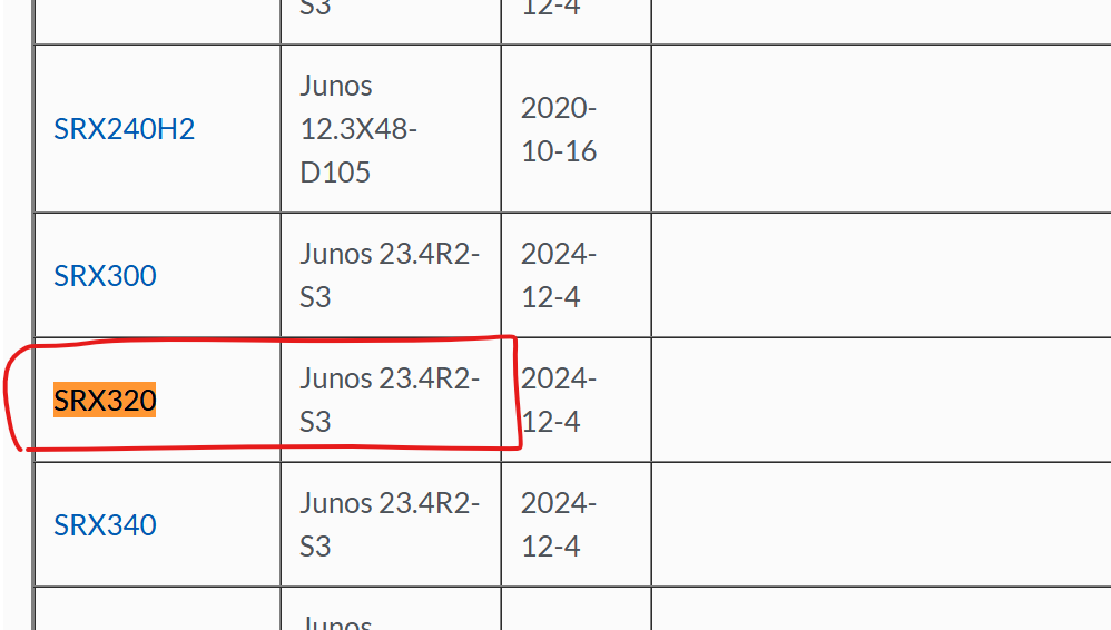 root> show version Model: srx320 Junos: 22.4R3.25 JUNOS Software Release [22.4R3.25]