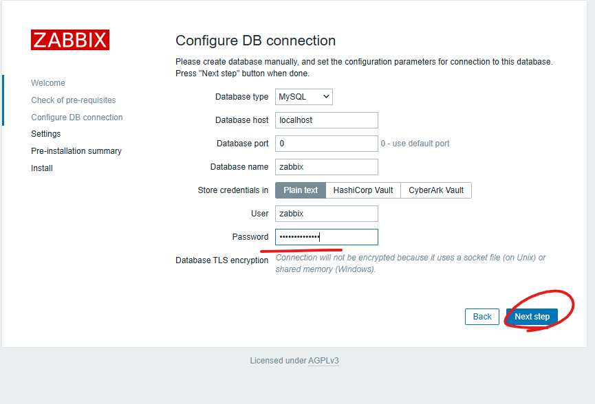 9. Configure the database for Zabbix server