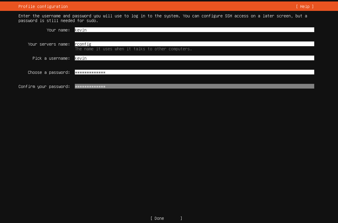 16. SSH Install를 선택하고 Done를 클릭합니다.