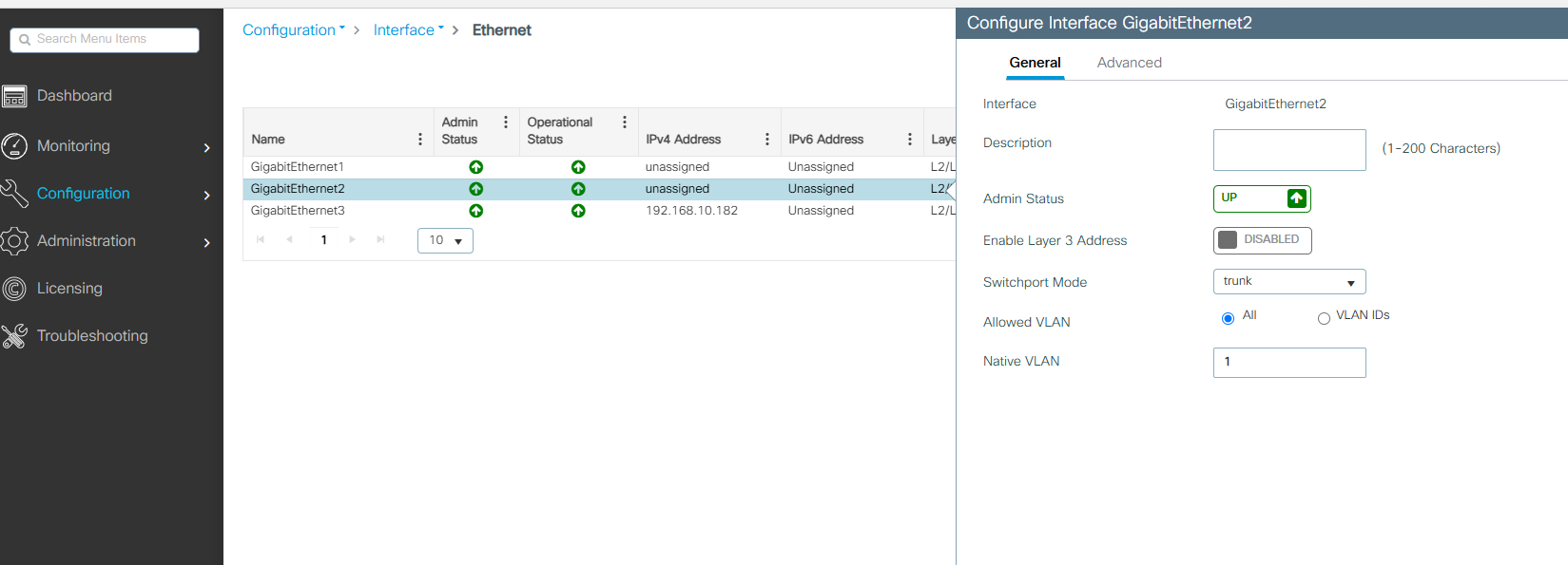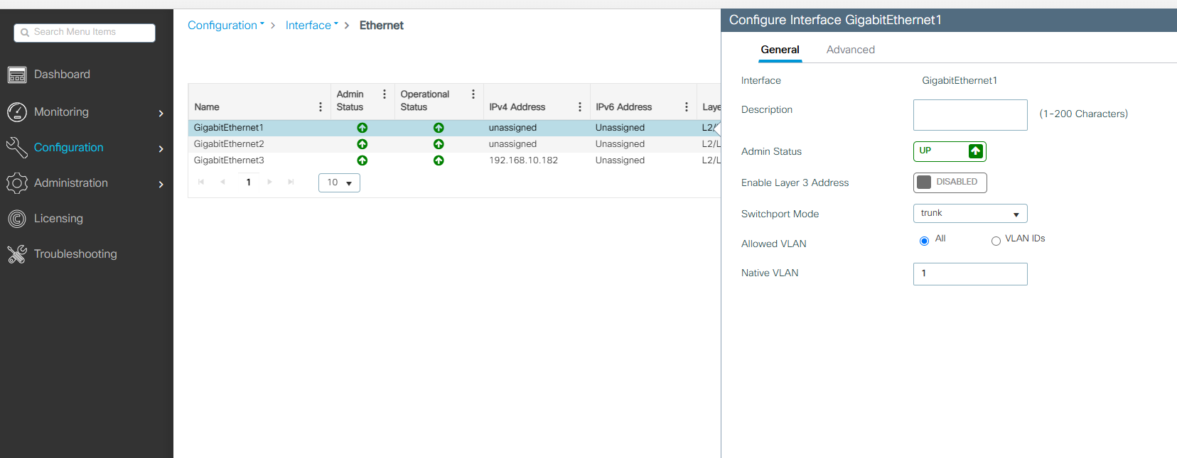 | interface GigabitEthernet0/1 no switchport ip address 10.10.10.10 255.255.255.0 negotiation auto ip route 0.0.0.0 0.0.0.0 10.10.10.254 |